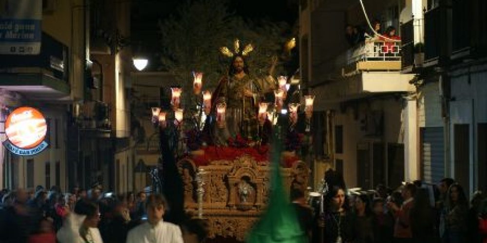 Ocho en punto de la tarde y la cruz de guía de la Cofradía de Nuestro Padre Jesús en la Oración en el Huerto y María Santísima de la Esperanza se ponía en el dintel de Consolación. Penitentes, mantillas, bandas, y como no, los protagonistas del día. Como de costumbre, el Compás se llenó para ver la salida más impresionante de la Semana Santa alcalaína.