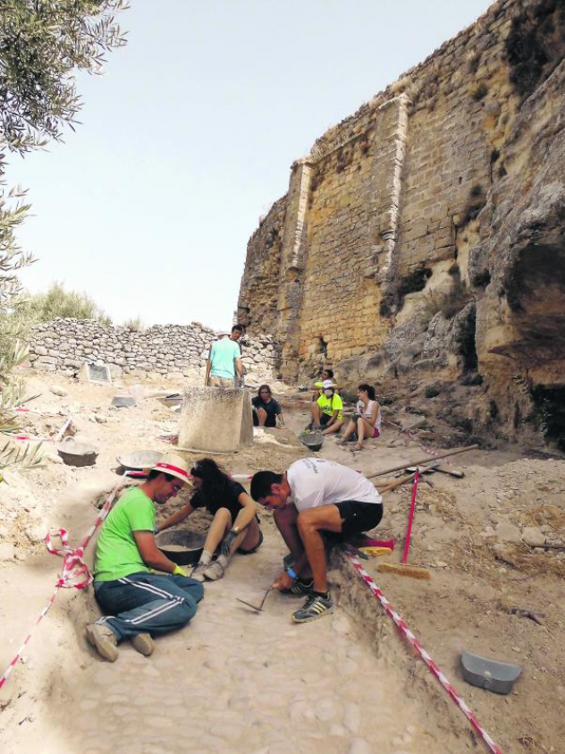 La labor de los jóvenes de varios países que excavan  permite el descubrimiento de una calle a los pies de la muralla, probablemente denominada del Rastro desde hace tiempo ha estado tapiada.