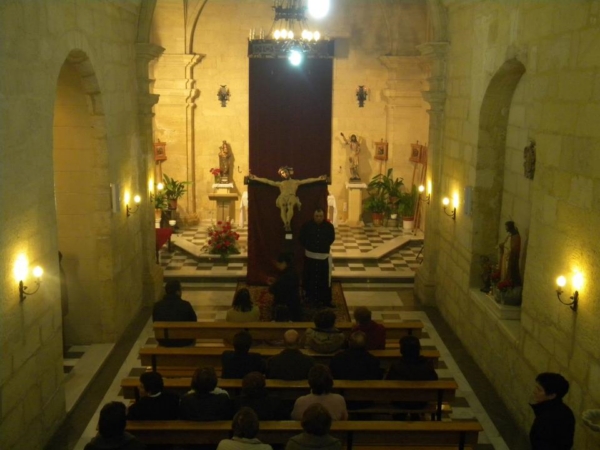 Desde las 19.30h se encontraba la iglesia abierta y el Cristo de la Salud cerca del pueblo, no como siempre en su dintel, sino en solemne besapies para todos sus fieles.
