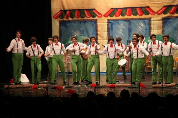 A continuación llegó el turno de la chirigota “Pisando Flores”, cuyos componentes imitaban a niños que iban a recibir la Primera Comunión. En el tercer lugar actuó la chirigota “A Mí, ¡No!”, que eligió como atuendo diferentes golosinas.