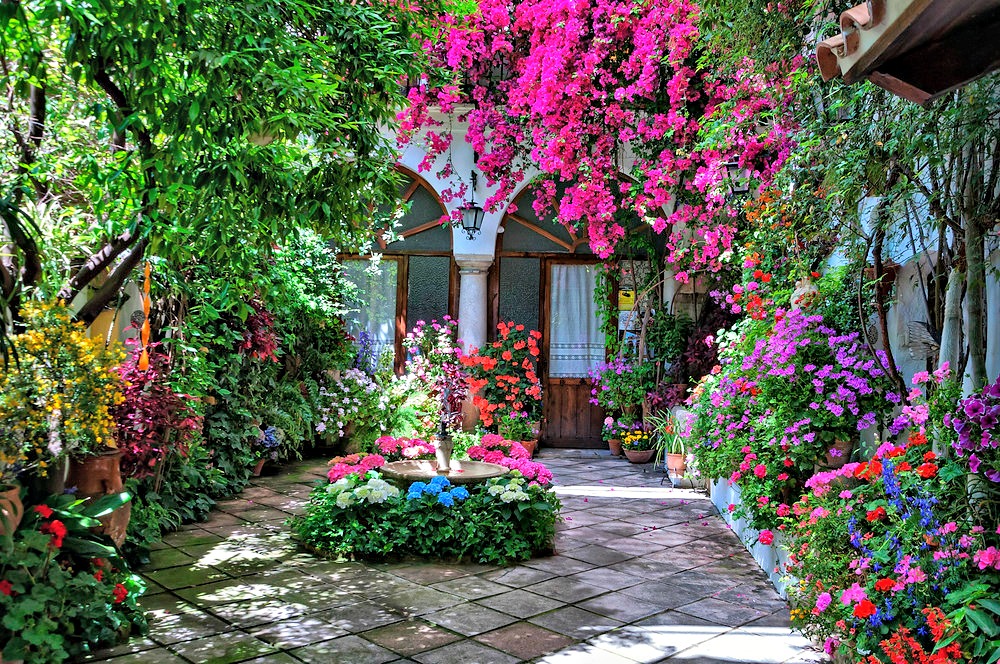 Córdoba, se viste de fiesta en Mayo, y engalana con flores patios y balcones por la Festividad de los Patios Cordobeses, declarados Patrimonio inmaterial de la Humanidad. Esta fiesta, consiste en que propietarios de patios de viviendas particulares, cuidan de estos durante todo el año y miman sus macetas para exponerlas al público en esta fiesta y participar en el concurso de patios.