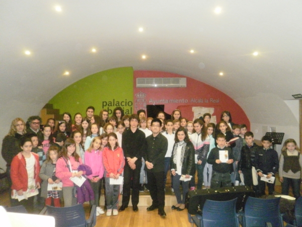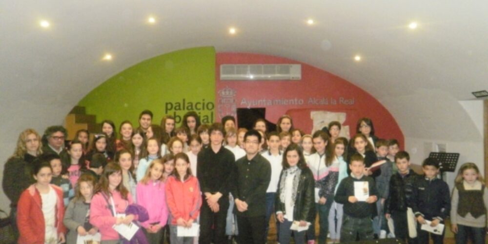 Al final del concierto los alumnos del conservatorio se hicieron una foto junto a los pianistas.