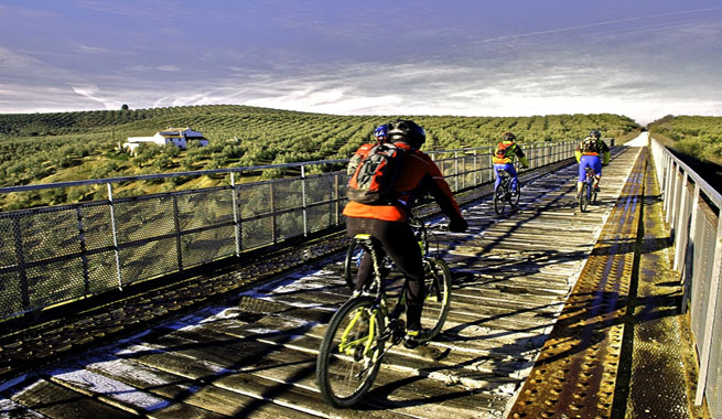 Si eres amante de las dos ruedas, Jaén es un destino ideal para la práctica de este divertido y sano deporte. En este caso te hablamos de la vía verde del Aceite. Ésta recorre desde Puente Genil hasta Jaén, pasando por Alcaudete, punto más cercano a nuestra localidad con una extensión de 128 kms. Se trata de la Vía Verde de más longitud de Andalucía.
